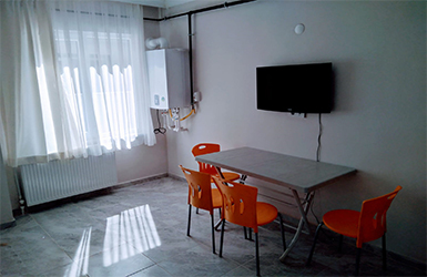Ferah ve geniş odalarda kişiye özel eşyalar ile birlikte sınırsız internet, televizyon, çamaşır makinesi ve kişiye özel buzdolabı imkanı bulunmaktadır.